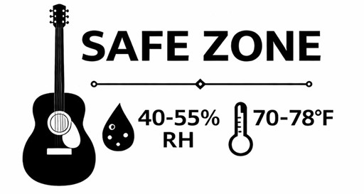 Maintaining consistent humidity and temperature is the #1 rule for keeping your instrument healthy, stable, and playing great. When stored within the Safe Zone, the wood moves minimally, remaining as close to its original factory specifications as possible.
