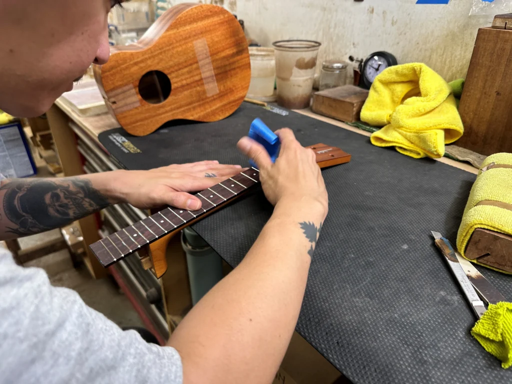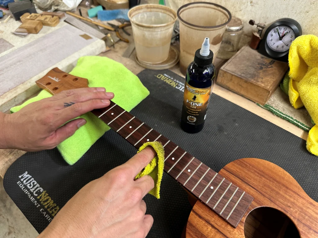 Kamaka uses MusicNomad’s F-One Oil for conditioning and preserving our rosewood and ebony fretboards. It helps keep the fretboard feeling smooth and improves the playability.